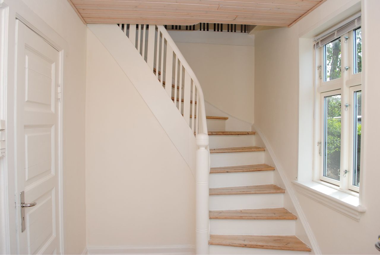 1. sal med opholdsstue og 2 værelser har loft til kip. Baghus og lille kælderrum.